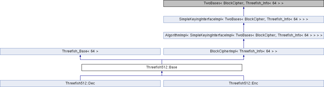 Inheritance diagram for Threefish512::Base:Additional Inherited Members | |