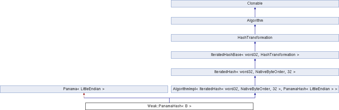 Inheritance diagram for Weak::PanamaHash< B >:Public Member Functions | |