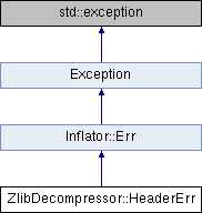 Inheritance diagram for ZlibDecompressor::HeaderErr:Additional Inherited Members | |