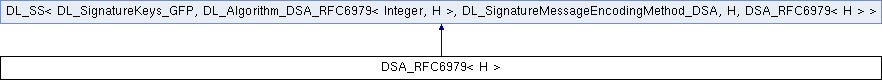Inheritance diagram for DSA_RFC6979< H >:Static Public Member Functions | |