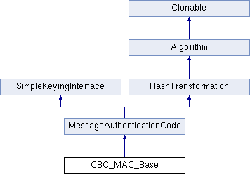 Inheritance diagram for CBC_MAC_Base:Public Member Functions | |