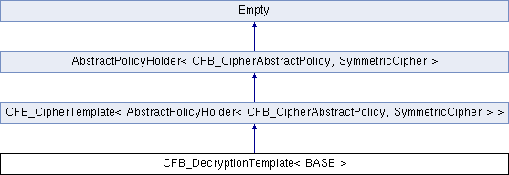 Inheritance diagram for CFB_DecryptionTemplate< BASE >:Additional Inherited Members | |