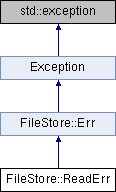 Inheritance diagram for FileStore::ReadErr:Additional Inherited Members | |