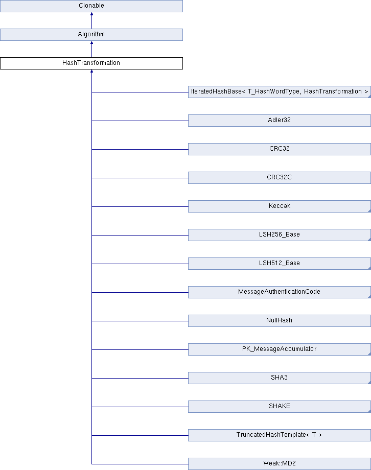 Inheritance diagram for HashTransformation:Public Member Functions | |