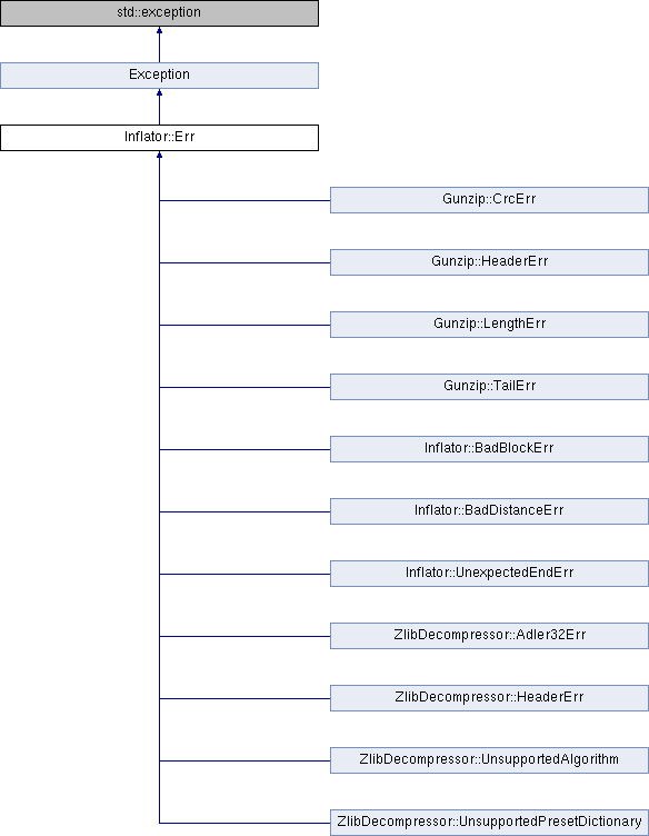 Inheritance diagram for Inflator::Err:Public Member Functions | |