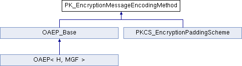 Inheritance diagram for PK_EncryptionMessageEncodingMethod:Public Member Functions | |