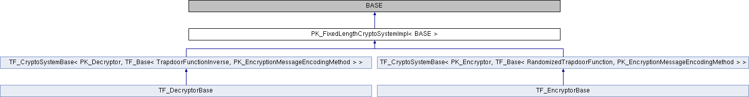 Inheritance diagram for PK_FixedLengthCryptoSystemImpl< BASE >:Public key trapdoor function default implementation.