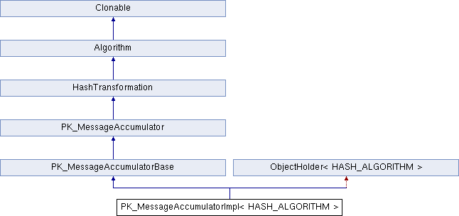 Inheritance diagram for PK_MessageAccumulatorImpl< HASH_ALGORITHM >:Public Member Functions | |