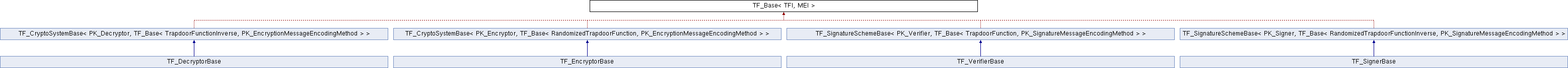 Inheritance diagram for TF_Base< TFI, MEI >:The base for trapdoor based cryptosystems.
