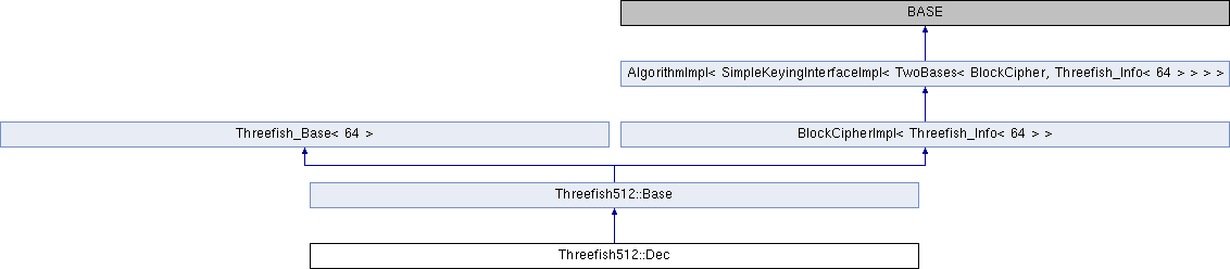 Inheritance diagram for Threefish512::Dec:Additional Inherited Members | |