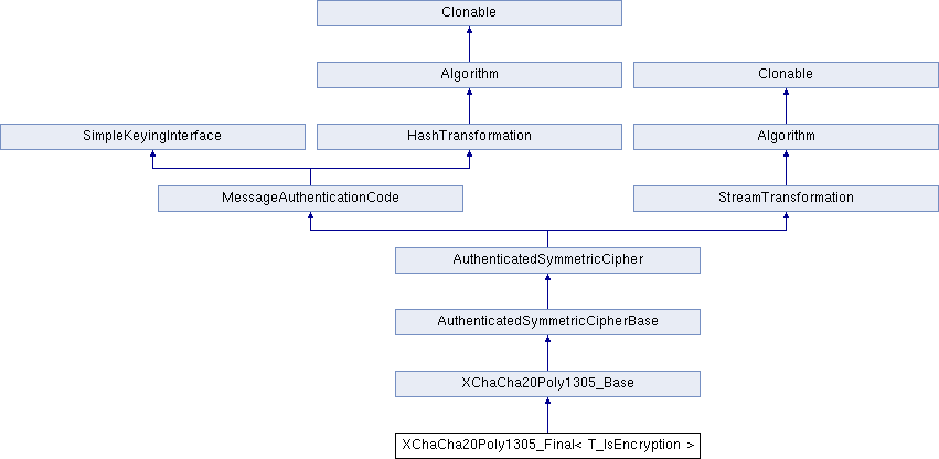 Inheritance diagram for XChaCha20Poly1305_Final< T_IsEncryption >:Additional Inherited Members | |