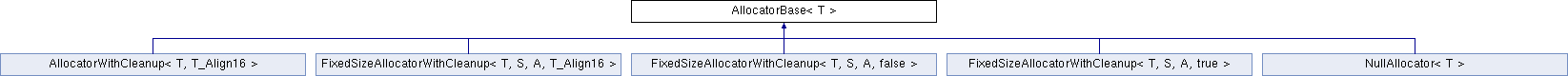 Inheritance diagram for AllocatorBase< T >:Public Member Functions | |