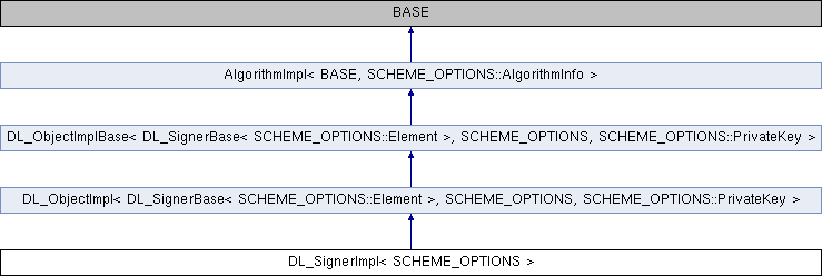 Inheritance diagram for DL_SignerImpl< SCHEME_OPTIONS >:Public Member Functions | |