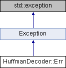 Inheritance diagram for HuffmanDecoder::Err:Public Member Functions | |