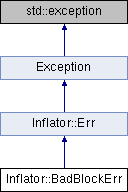 Inheritance diagram for Inflator::BadBlockErr:Additional Inherited Members | |