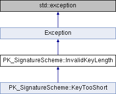 Inheritance diagram for PK_SignatureScheme::InvalidKeyLength:Public Member Functions | |