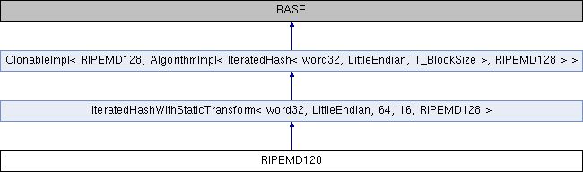 Inheritance diagram for RIPEMD128:Static Public Member Functions | |