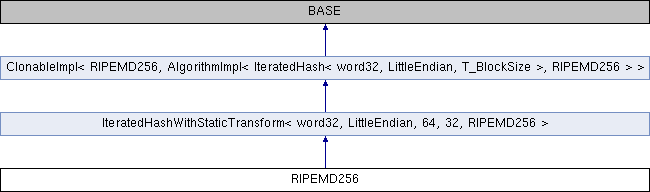Inheritance diagram for RIPEMD256:Static Public Member Functions | |