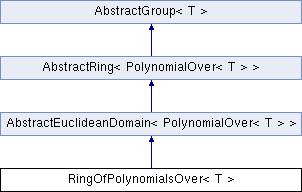 Inheritance diagram for RingOfPolynomialsOver< T >:Classes | |