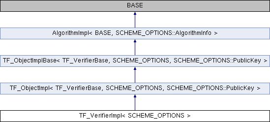 Inheritance diagram for TF_VerifierImpl< SCHEME_OPTIONS >:Additional Inherited Members | |