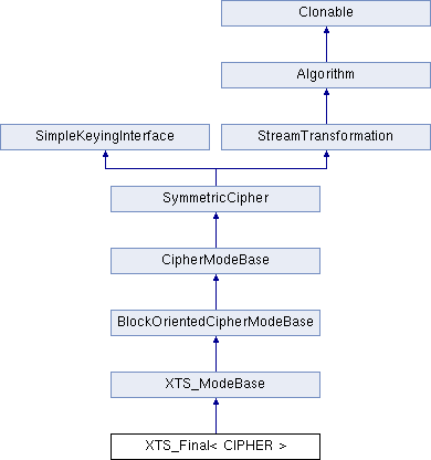 Inheritance diagram for XTS_Final< CIPHER >:Additional Inherited Members | |