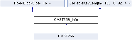 Inheritance diagram for CAST256_Info:Static Public Member Functions | |