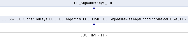 Public Types inherited from DL_SS< DL_SignatureKeys_LUC, DL_Algorithm_LUC_HMP, DL_SignatureMessageEncodingMethod_DSA, H > | |