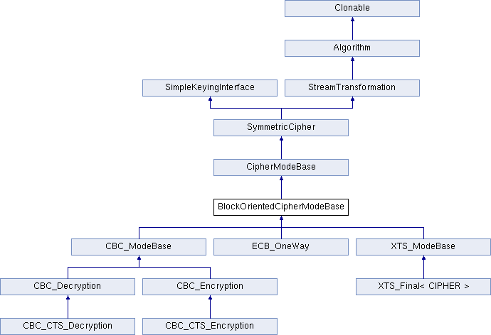 Inheritance diagram for BlockOrientedCipherModeBase:Public Member Functions | |