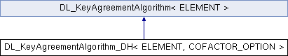 Inheritance diagram for DL_KeyAgreementAlgorithm_DH< ELEMENT, COFACTOR_OPTION >:Public Types | |