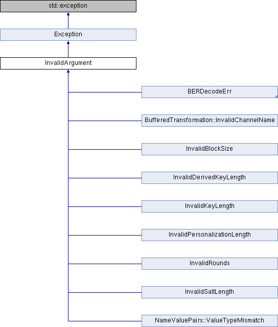 Inheritance diagram for InvalidArgument:Public Member Functions | |