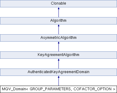 + Inheritance diagram for MQV_Domain< GROUP_PARAMETERS, COFACTOR_OPTION >: