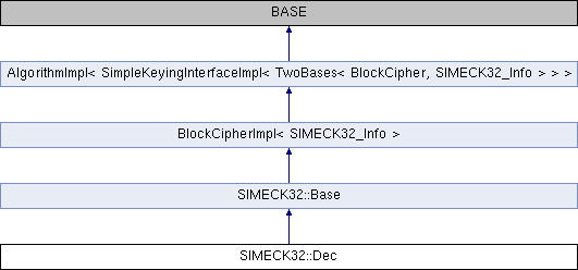 Inheritance diagram for SIMECK32::Dec:Public Member Functions | |