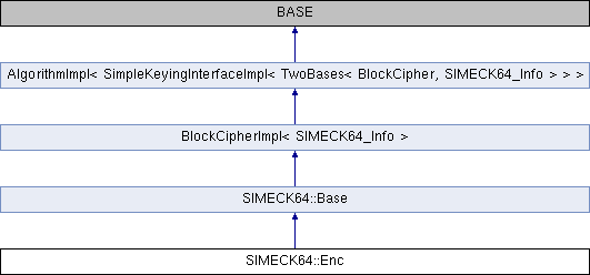 Inheritance diagram for SIMECK64::Enc:Public Member Functions | |