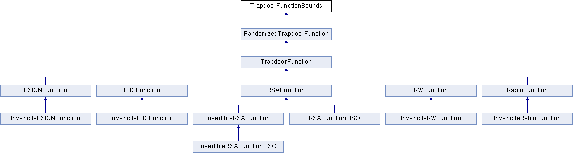 Inheritance diagram for TrapdoorFunctionBounds:Public Member Functions | |