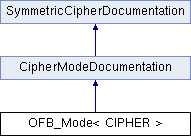 Inheritance diagram for OFB_Mode< CIPHER >:Public Types | |