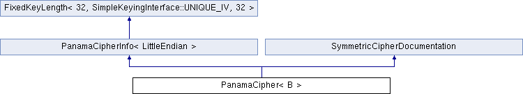 Inheritance diagram for PanamaCipher< B >:Public Types | |