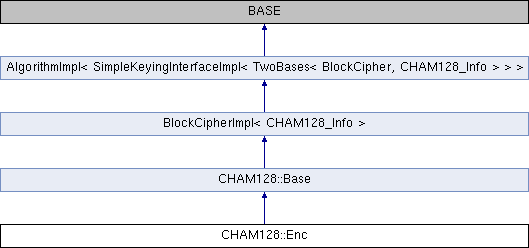 Inheritance diagram for CHAM128::Enc:Public Member Functions | |