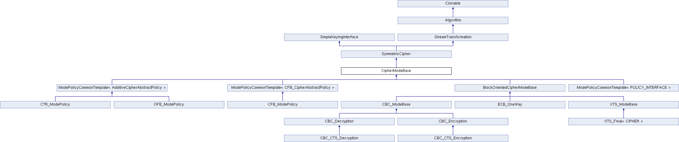 Inheritance diagram for CipherModeBase:Public Member Functions | |