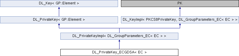 Inheritance diagram for DL_PrivateKey_ECGDSA< EC >:Public Types | |