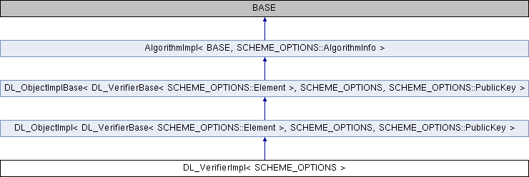 Inheritance diagram for DL_VerifierImpl< SCHEME_OPTIONS >:Public Member Functions | |