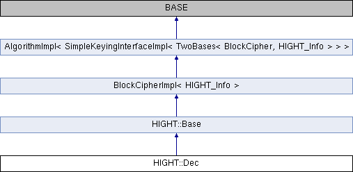 Inheritance diagram for HIGHT::Dec:Public Member Functions | |
