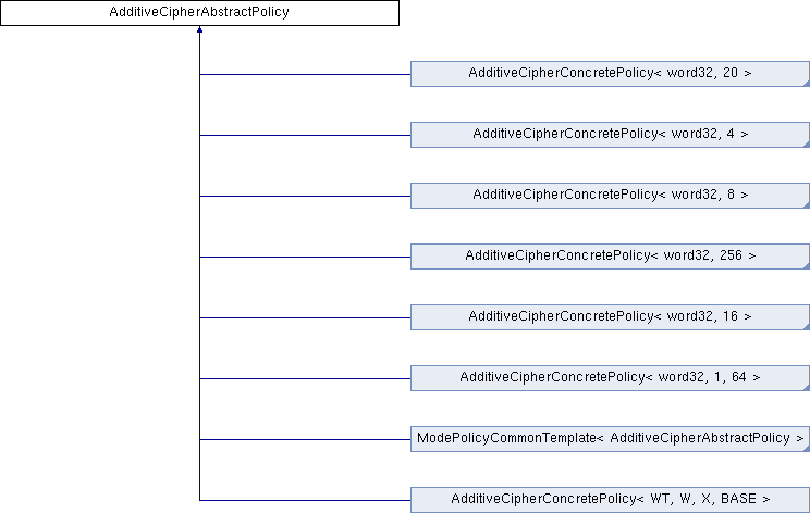 Inheritance diagram for AdditiveCipherAbstractPolicy:Public Member Functions | |