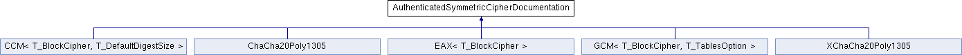 Inheritance diagram for AuthenticatedSymmetricCipherDocumentation:Public Types | |