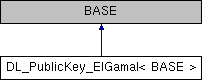 Inheritance diagram for DL_PublicKey_ElGamal< BASE >:Public Member Functions | |