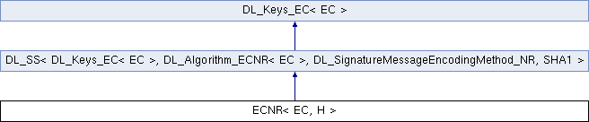 - Public Types inherited from DL_SS< DL_Keys_EC< EC >, DL_Algorithm_ECNR< EC >, DL_SignatureMessageEncodingMethod_NR, SHA1 >