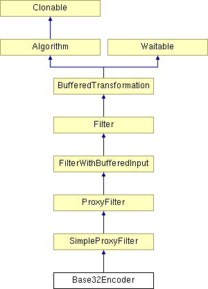 Base32Encoder (BufferedTransformation *attachment=NULL, bool uppercase=true, int outputGroupSize=0, const std::string &separator=":", const std::string &terminator="") | |