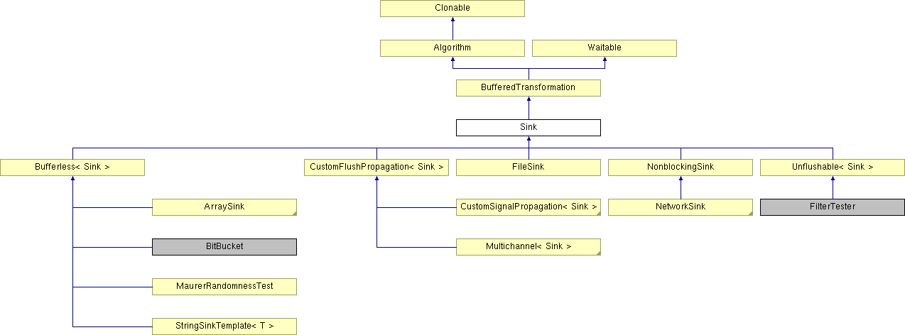 Implemented in BaseN_Encoder, BaseN_Decoder, Grouper, FileSink, MeterFilter, FilterWithBufferedInput, FilterWithInputQueue, HashFilter, SignerFilter, Redirector, StringSinkTemplate< T >, ArraySink, ArrayXorSink, SecretSharing, InformationDispersal, MessageQueue, NetworkSink, ByteQueue, RandomPool, MaurerRandomnessTest, Deflator, and Inflator.