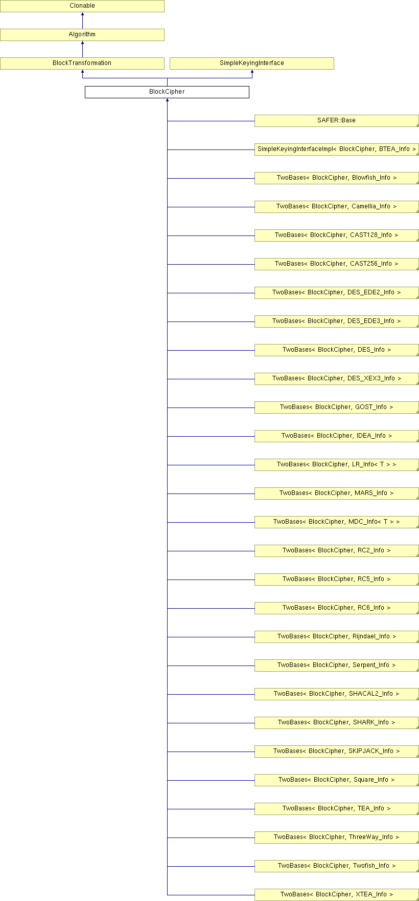 Inheritance diagram for BlockCipher:
