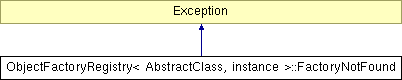 Inheritance diagram for ObjectFactoryRegistry< AbstractClass, instance >::FactoryNotFound: