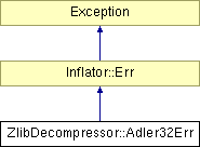 Inheritance diagram for ZlibDecompressor::Adler32Err: